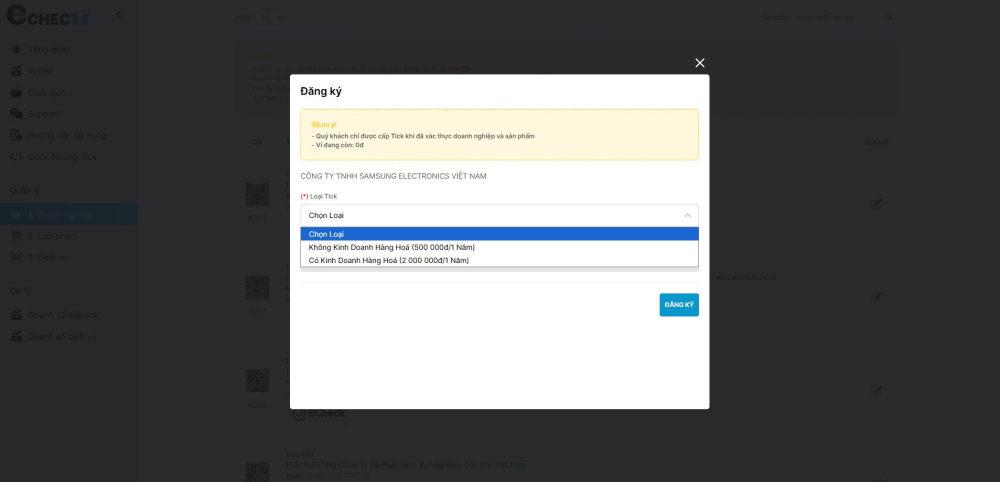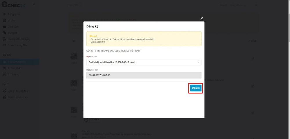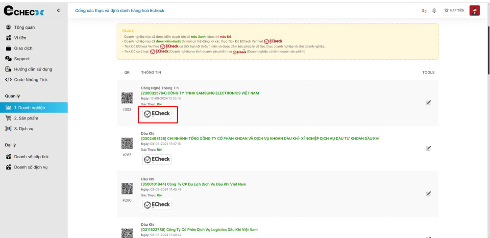 Hướng dẫn chi tiết thao tác yêu cầu cấp tích đỏ ECheck cho doanh nghiệp.